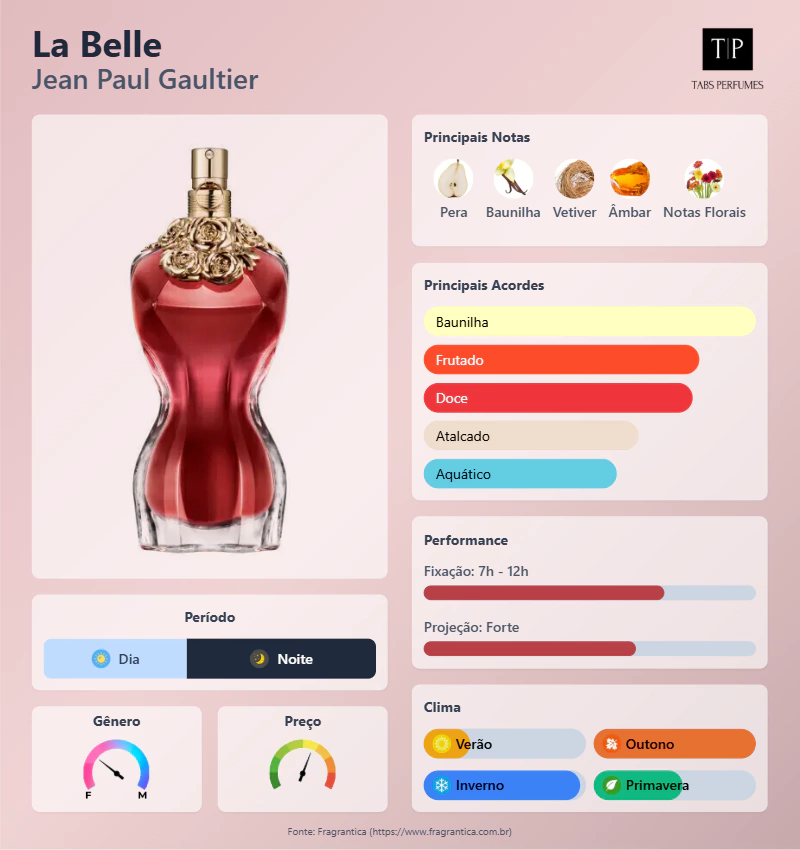 Descubra a essência irresistível do perfume feminino Jean Paul Gaultier - La Belle. Esta fragrância é uma fusão encantadora de baunilha doce, pêra suculenta e vetiver fresco, criando um aroma sedutor e inesquecível que destaca sua feminilidade. Ideal para mulheres que desejam deixar uma marca por onde passam, La Belle é o toque final perfeito para qualquer ocasião. Experimente e sinta-se extraordinária todos os dias!