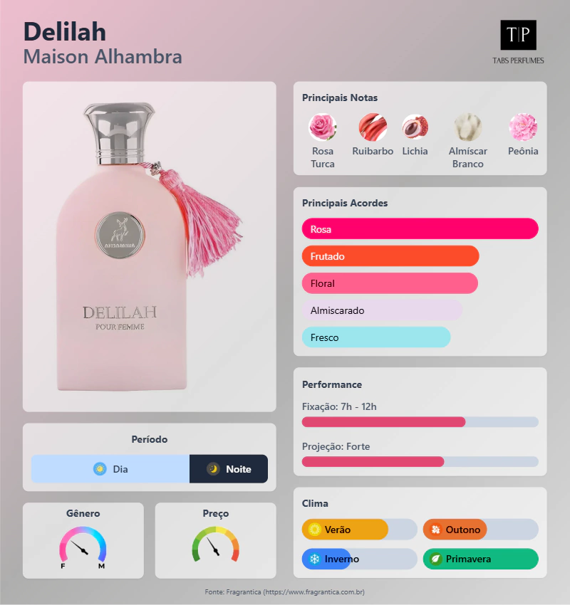 Descubra a essência do encanto com o perfume Feminino Maison Alhambra - Delilah. Este aroma irresistível combina notas florais delicadas e acordes frutados, criando uma fragrância sofisticada e envolvente. Ideal para a mulher moderna que deseja marcar presença com elegância e sutileza. Seja para o dia a dia ou ocasiões especiais, Delilah é o toque final perfeito para destacar sua personalidade única. Experimente e sinta-se extraordinária.
