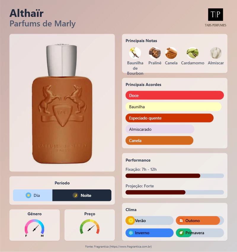 Descubra o encanto irresistível do perfume Masculino Parfums de Marly - Althaïr. Esta fragrância exala sofisticação e masculinidade, combinando notas envolventes de baunilha, âmbar e fava tonka. Ideal para o homem moderno que busca deixar uma impressão duradoura, Althaïr é perfeito para qualquer ocasião. Eleve sua presença com este aroma inconfundível e sinta-se confiante e elegante todos os dias.