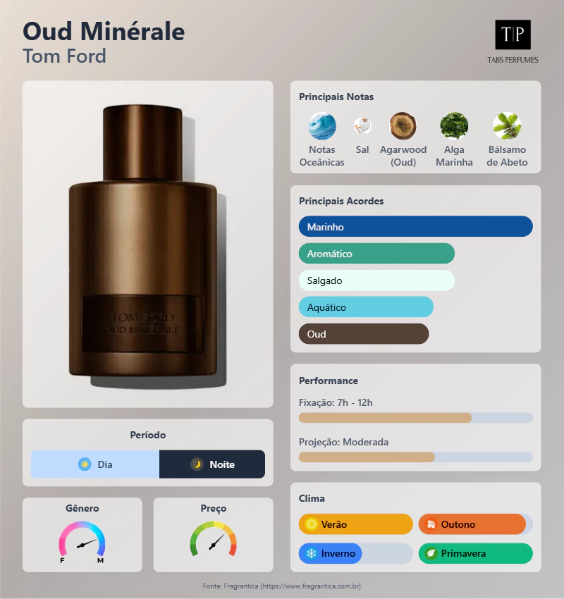 Descubra a sofisticação do Tom Ford - Oud Minérale, uma fragrância masculina que combina o exótico e o refrescante. Com notas de oud defumado e um toque de sal marinho, este perfume evoca a brisa marítima em harmonia com a profundidade das madeiras orientais. Ideal para o homem moderno que busca um aroma distinto e elegante. Deixe-se envolver por essa experiência olfativa única e irresistível.